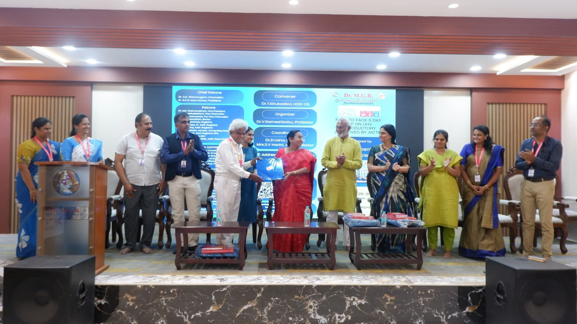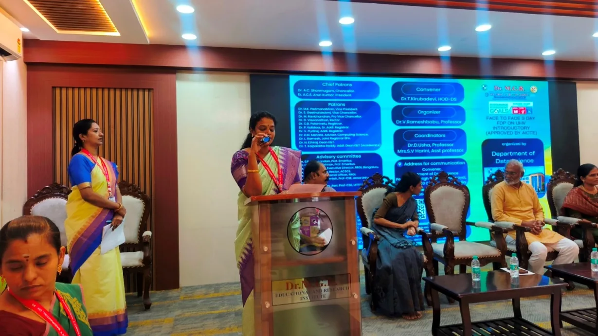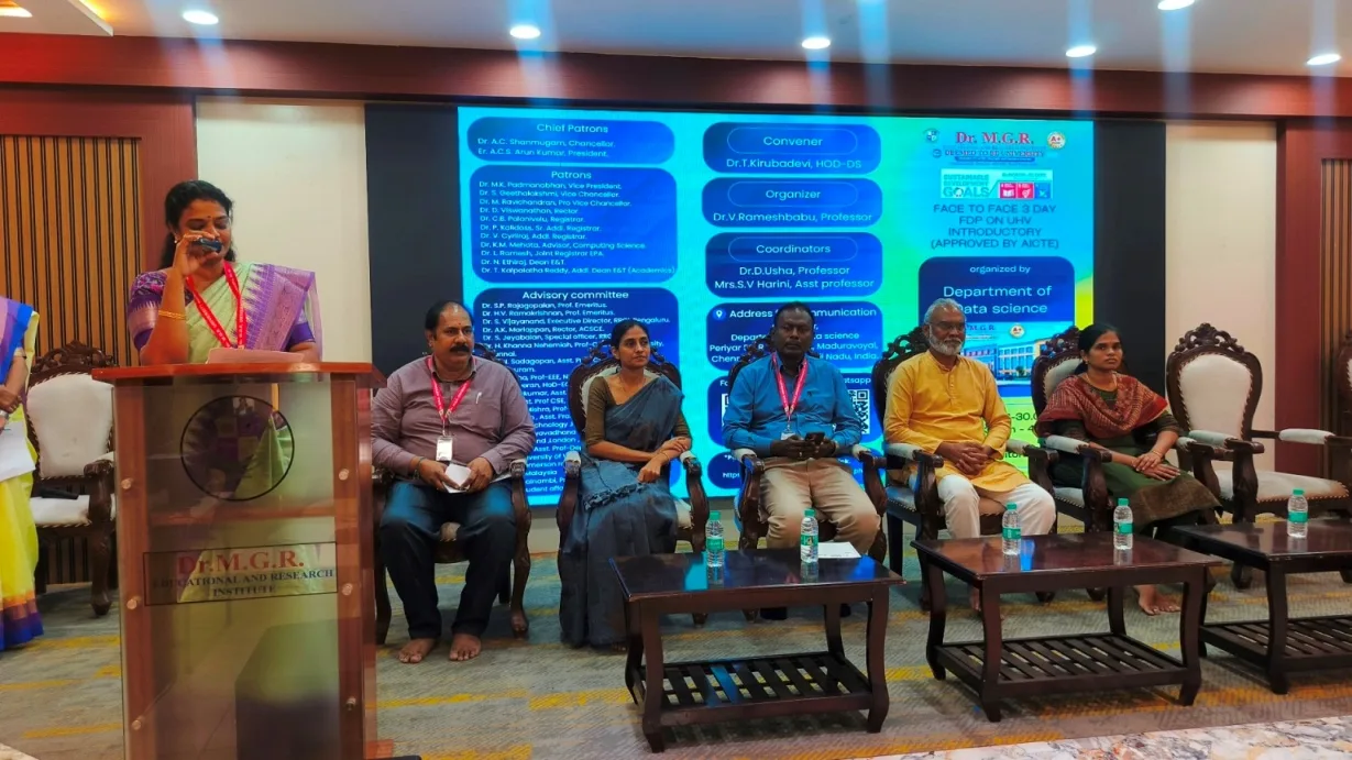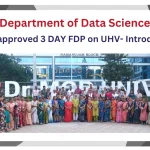 The Department of Data Science, Dr. M.G.R. Educational and Research Institute, in association with the Association of Universal Data & Intelligence, successfully organized an AICTE-approved Face-to-Face Three-Day Faculty Development Programme (FDP) on Universal Human Values (UHV) – Introductory. The programme aimed to promote ethical living, social responsibility, and harmony in personal and professional life among faculty members.