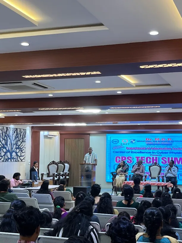 The CPS Tech Summit 2025 was successfully organized by the Center of Excellence in Cyber Physical Systems (COE–CPS), Department of Information Technology, Dr. M.G.R. Educational and Research Institute, on 9–10 December 2025. The two-day summit brought together academicians, industry experts, and students for knowledge sharing, innovation, and hands-on learning in the field of Cyber Physical Systems.