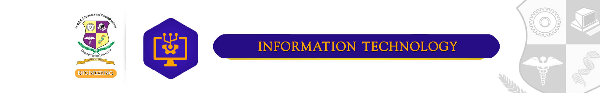Welcome to the department of Information technology at Dr.M.G.R.Educational & Research Institute, Chennai. In this era of digital world, the IT department offers an excellent atmosphere for students to learn and acquire the necessary skills as demanded by the industry in a state of the art facility and highly qualified faculty. The department works with the objective of addressing critical challenges faced by the Industry, society and the academia.