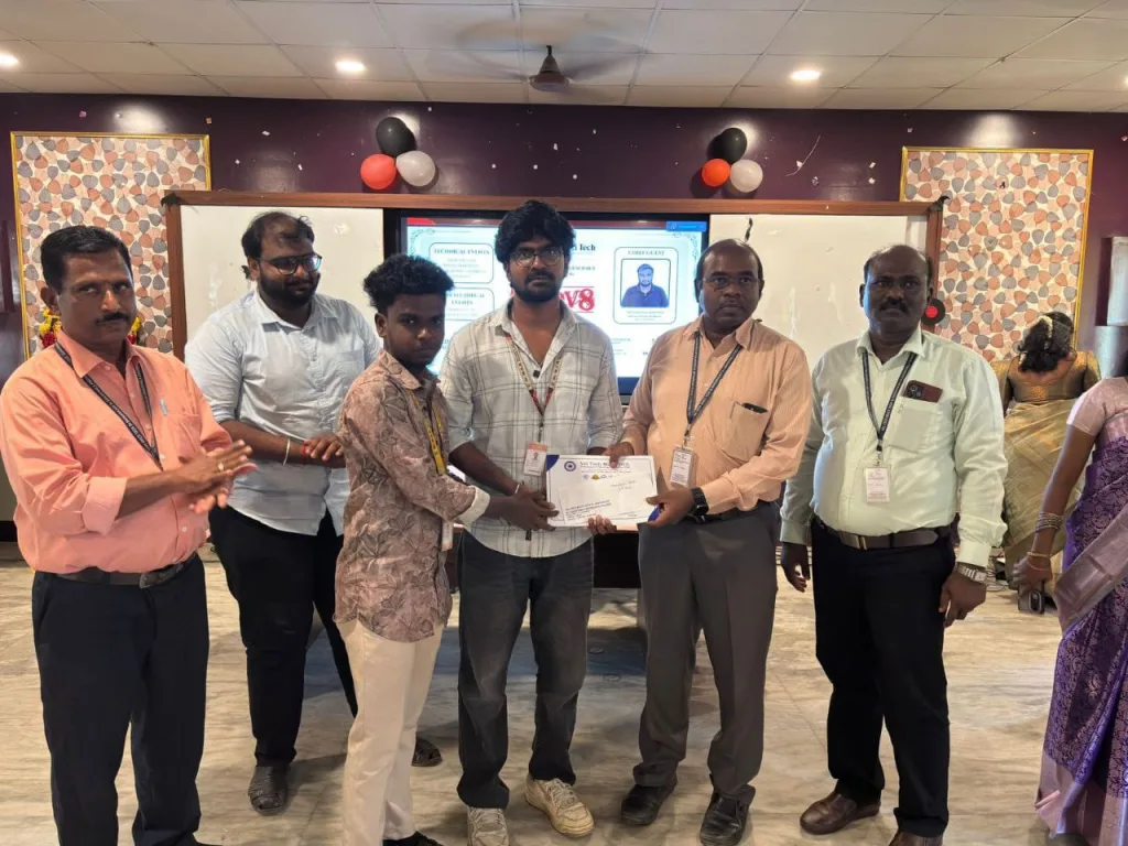 Our department student team “Static Squad” received the Top 5 Appreciation Award out of 40 Teams at the National Level IDEATHON 2026 conducted by S.A. Engineering College. The problem statement given was about creating awareness and improving accessibility of Tamil Nadu government schemes in rural areas. The team Members were Jashwanth G & Dharania T of Iv Yr and Sriram S & Sanjay S.K of III Year IT.