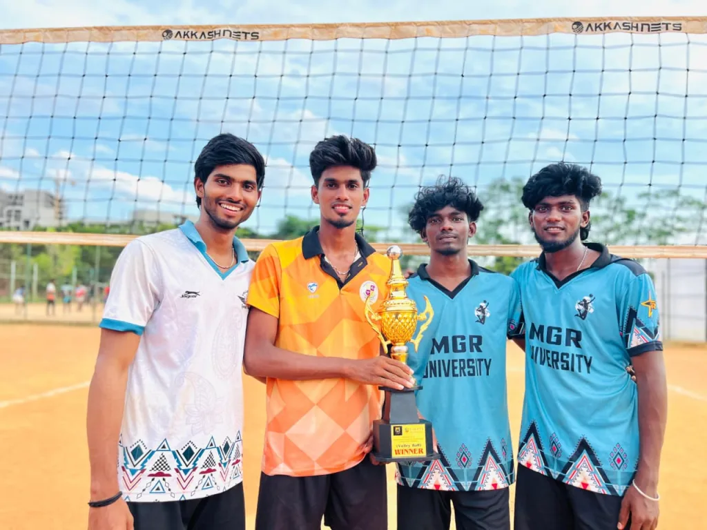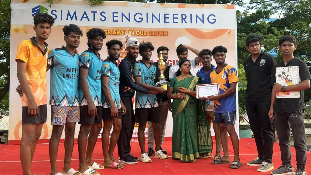 Our IT department students Mr. Adhi Ganesh, Mr. R. Aravind, Mr. R. Lokesh, Mr. Suekesh and Mr. Yogeswaran of final year successfully participated in Volleyball competition and got 1st prize in Saveetha University.