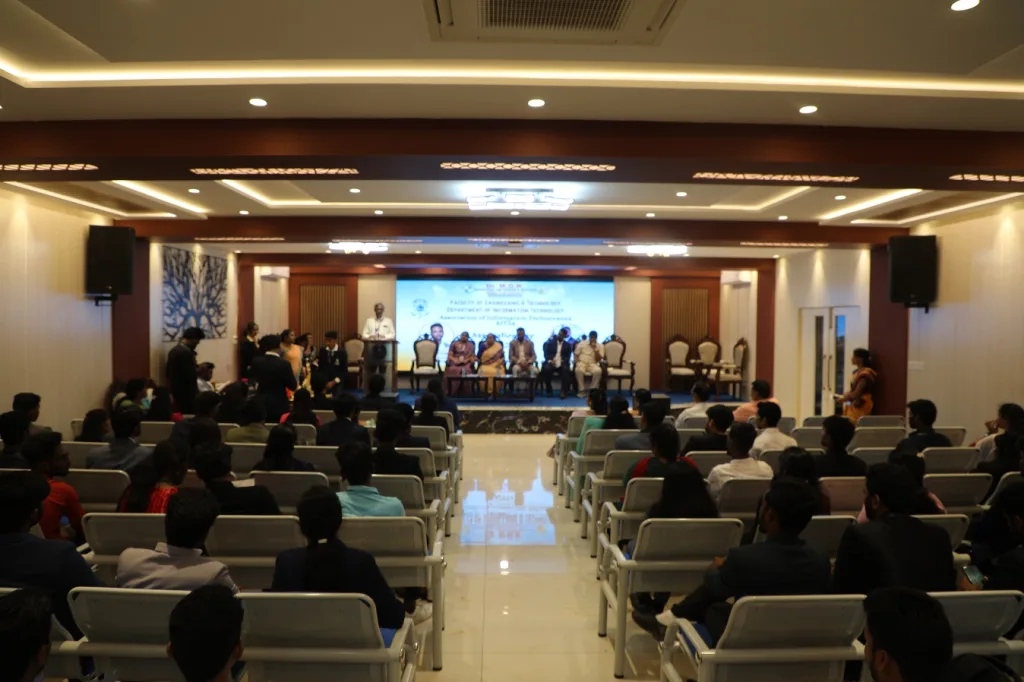 The Department of Information Technology organized Association Day on 26.03.2025 at 2.30 PM in University Auditorium, Ramanujam Block, Main campus. The chief guest for the day was Mr. Yegnaswamy Yegna Narayanan, Vice President, Infosys, and the Alumni guest was Mr. Samrat Kishan Rao, CEO Pragnya Software Solutions & Indo Swiss.
