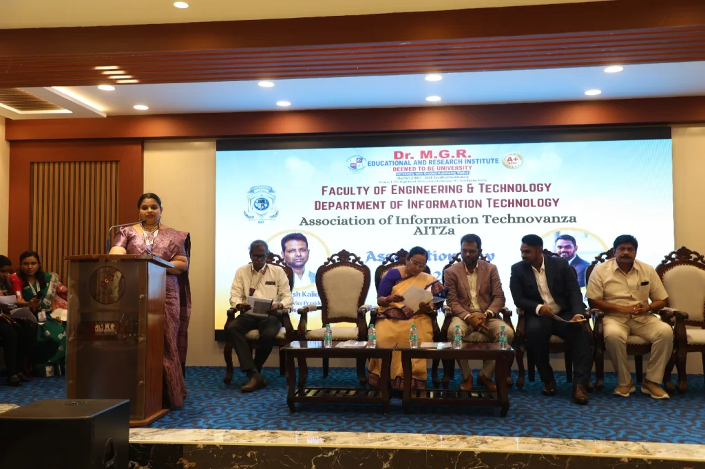 The event started with the introductory talk Why we gathered here by Ms. Harini, Secretary, AITZa, followed by the welcome address given by Dr. N. Kanya, HOD – IT. Then Mrs. C.Tamilselvi, Association Convener introduced the Association Office bearers and explained about the Association- AITZa. Followed by this Dr. S. Geethalakshmi, Vice Chancellor gave the presidential address, Dr. Ramesh. L JR- EPA gave the felicitation address.