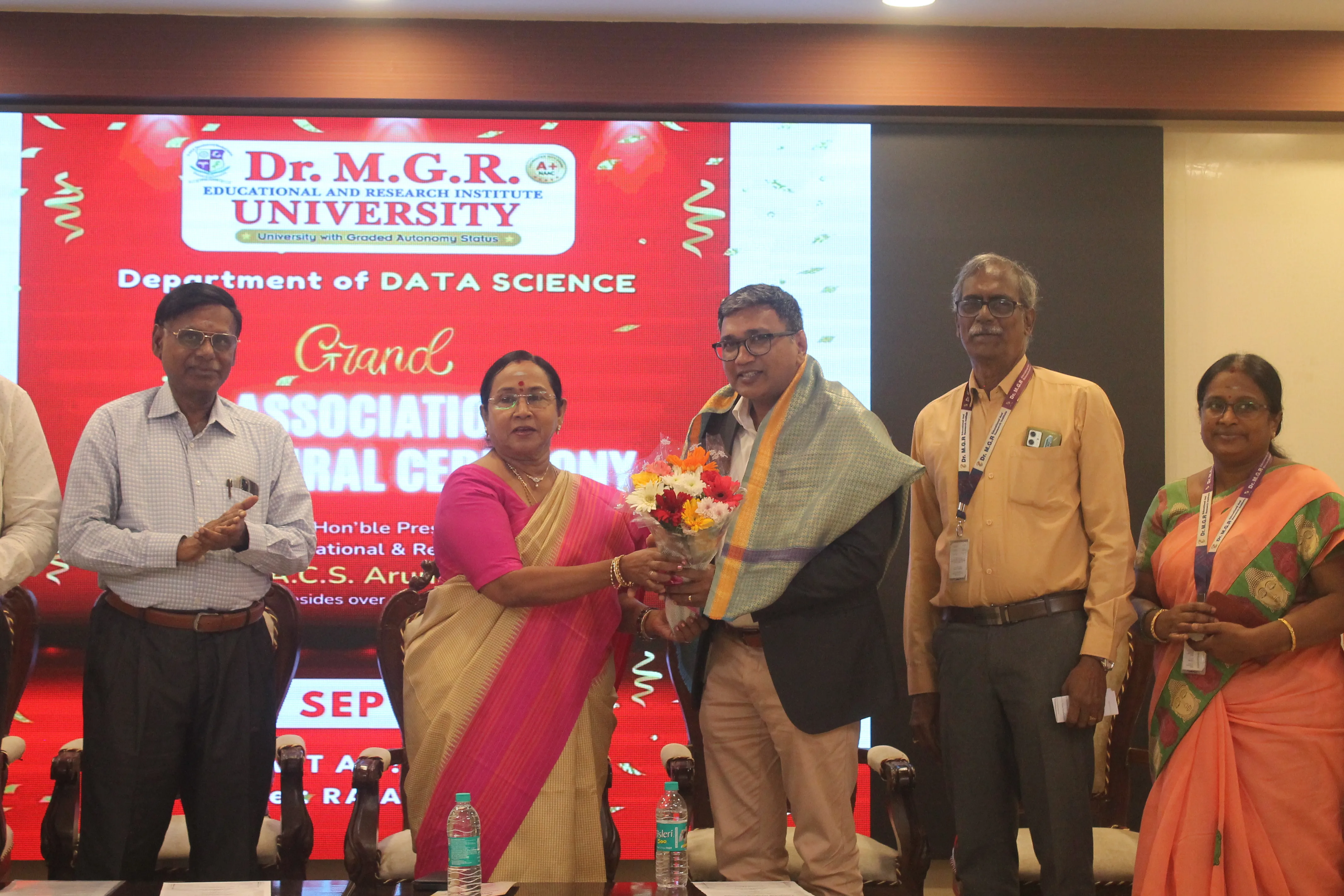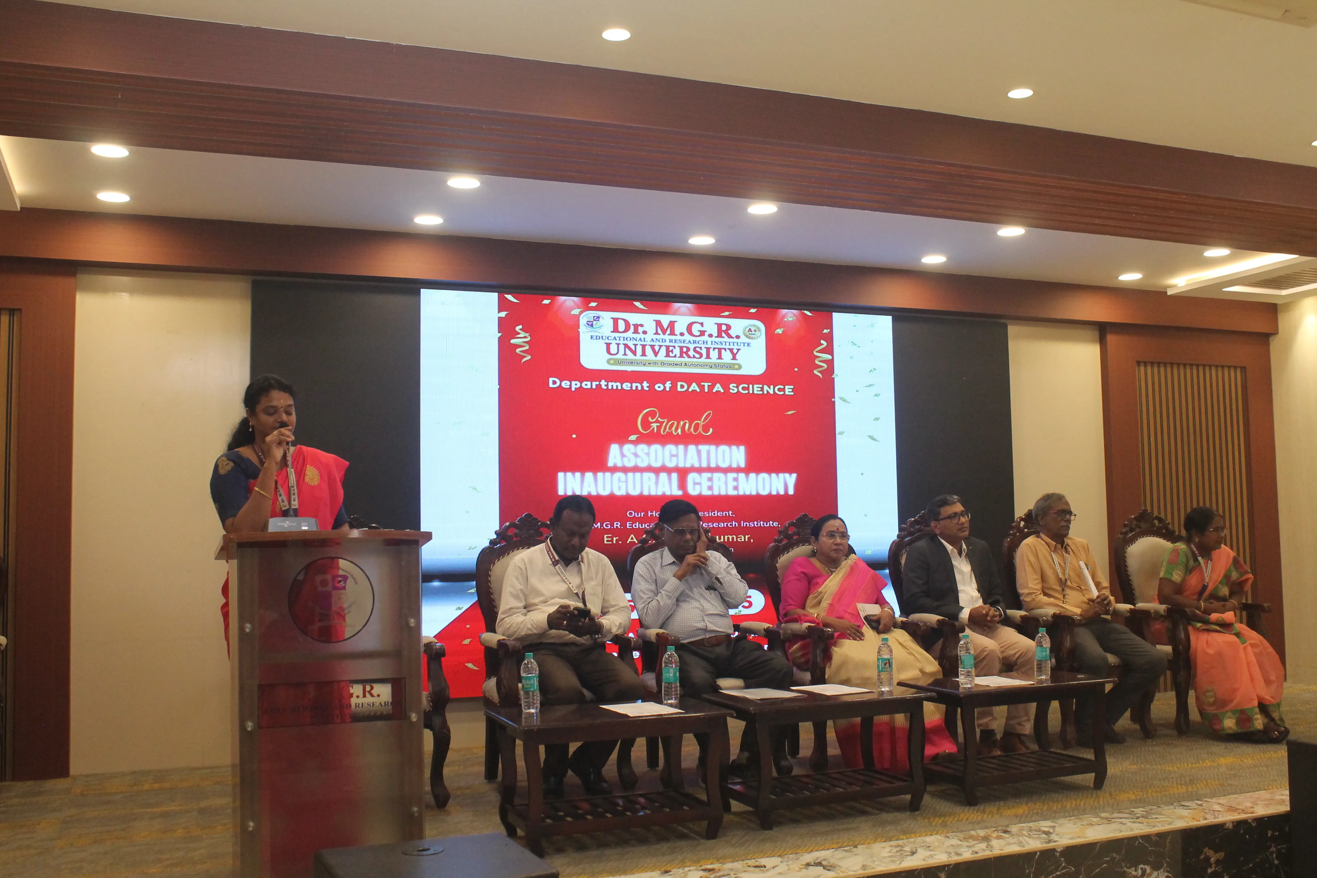 The Data Science Department organized the inaugural ceremony of its Association for Universal Data & Intelligence (AUDI) to formally launch a structured platform for data-driven learning and collaboration. The event, held in the University Auditorium on 15 September 2025, commenced with an invocation, lighting of the Kuthuvilakku, and a cultural performance that set an engaging academic ambience. Senior administrators, including the Honourable Vice Chancellor and Rector, highlighted the growing significance of data science, artificial intelligence, and sustainable development goals in engineering education and societal transformation. The chief guest, Mr. George Koshi, emphasized industry expectations, emerging opportunities in data analytics, and the need for students to be proficient in tools and platforms relevant to large-scale data processing. The formal inauguration and logo reveal of AUDI, followed by badge distribution and an oath ceremony for office bearers, reinforced the Association’s commitment to promoting research orientation, ethical data practices, and continuous skill enhancement among students.