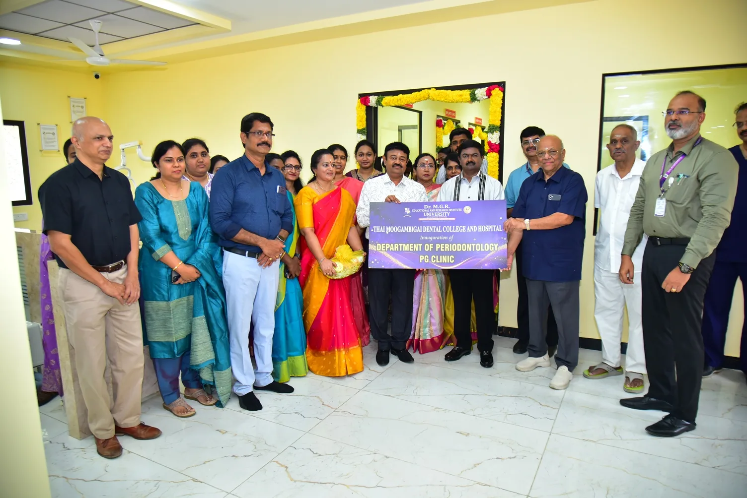 Er. A. C. S. Arunkumar, Honorable President, and A. Ravikumar, Honorable Secretary, the Inauguration of the CBCT Centre (1st Floor), Renovated Postgraduate Unit of the Department of Periodontology (2nd Floor), Department of Implantology (1st Floor), and the Mobile Dental Van was held on 9 March 2026 at 11:30 AM at Thai Moogambigai Dental College & Hospital, a constituent unit of Dr. M. G. R. Educational & Research Institute.
