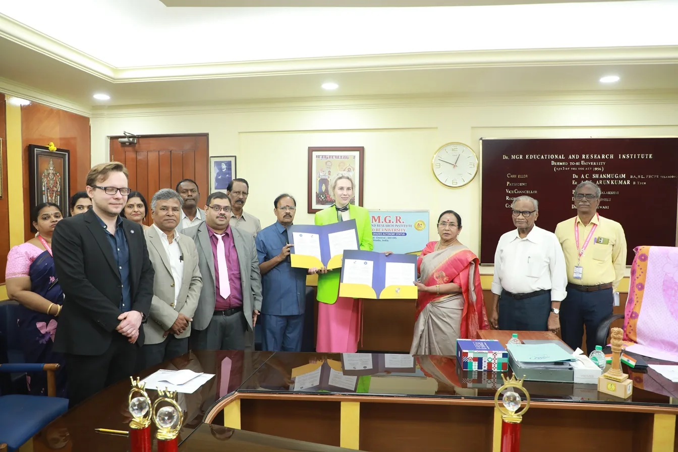 Dr. MGR University has signed an MoU with HSE University, Russia, marking a significant milestone in international academic collaboration. Felicitated the distinguished delegation from HSE University and exchanged the MoU, in the presence of the university leadership.
