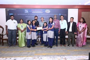 The valedictory function of TECHASTRA’25 – THRONES, the event was further enriched by the esteemed presence of Mr. Ramesh Radhakrishnan, Scientist-G at the Open Technology Centre, National Informatics Centre, and Mr. Navneet Kumar Pandey, Associate Vice President at JPMorgan Chase. Their valuable perspectives on emerging technologies, digital transformation, and industry expectations added significant depth and relevance to the event.