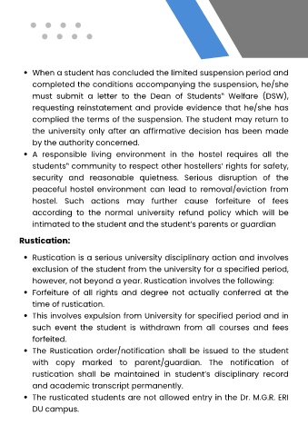 hostel. Such actions may further cause forfeiture of fees