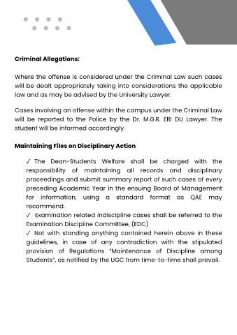✓ Examination related indiscipline cases shall be referred to the