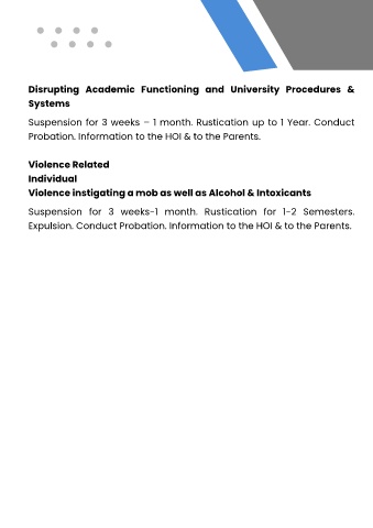 Suspension for 3 weeks-1 month. Rustication for 1-2 Semesters.