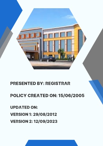 PRESENTED BY: REGISTRAR POLICY CREATED ON: 15/06/2005 UPDATED ON: VERSION 1: 29/08/2012 VERSION 2: 12/09/2023