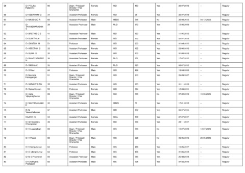 Dr P S Jikki Kalaiselvi Dr KEERTHINI G Dr NAUSHAD R Dr THAMIZHARASAN S Dr BRETHIS C S Dr SUMITHA A Dr GANESH M Dr ABEETHA S Dr SUMA S Dr BHAGYASHREE N Dr RAMYA K Dr B Ravi Dr Manisha Kanagarajan Dr SARANYA BAI Dr Rama Selvam Dr Usha Vijayaraghavan Dr SELVARANJANI K Dr M Vasanthakumar NAZRIN S Dr Sri Sowmiya Dhanapalan Dr K Loganathan Dr V Palani Dr K Senguttuvan Dr G Uthira Kumar Dr M S Prabhakar Dr S Nithyaraj Prakasam