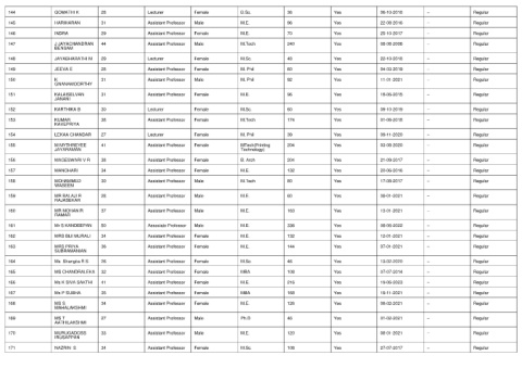 GOMATHI K HARIHARAN INDRA J JAYACHANDRAN BENSAM JAYABHARATHI M JEEVA E K GNANAMOORTHY KALAISELVAN JANANI KARTHIKA B KUMAR KAVEPRIYA LEKAA CHANDAR M MYTHREYEE JAYARAMAN MAGESWARI V R MANOHARI MOHAMMED WASEEM MR BALAJI R RAJASEKAR MR MOHAN R RAMAR Mr S KANDEEPAN MRS BIJI MURALI MRS PRIYA SUBRAMANIAN Ms Shangita R S MS CHANDRALEKA Ms K SIVA SAKTHI Ms P SUBHA MS S MAHALAKSHMI MS T AATHILAKSHMI MURUGADOSS IRUSAPPAN NAZRIN S